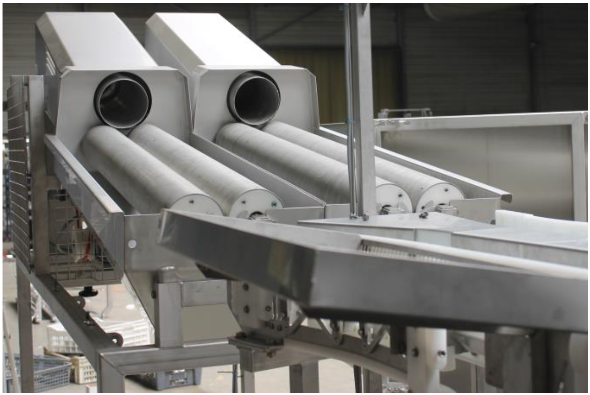 Cette machine, équipée de doubles tubes séparateurs à vis développés par Vendée Concept, assure une alimentation automatique de la calibreuse bi-ligne avec une cadence pouvant atteindre 20 000 produits par heure et par ligne. Ce système optimise le rythme de la calibreuse en séparant les huîtres individuellement. Les doublons sont renvoyés automatiquement vers la cuve de réception en eau grâce à un convoyeur de retour.