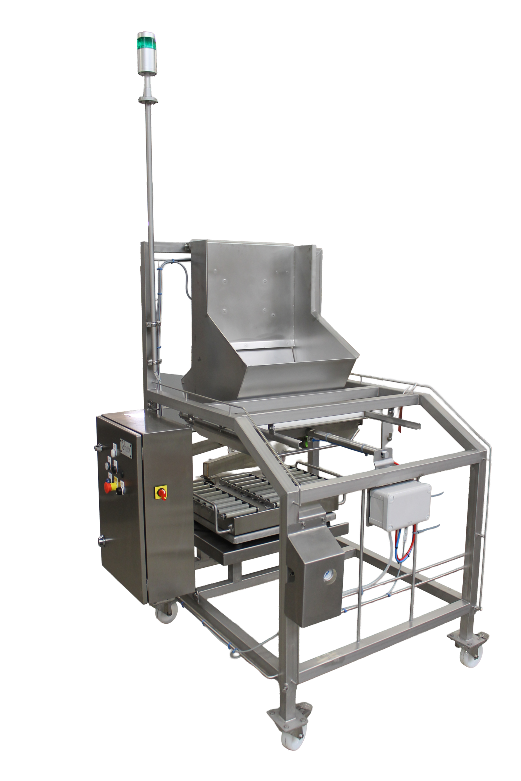 La CALIBRA SA permet de peser un flux continu de produits en lots pour le conditionnement. Le système est composé d’une trémie en inox, d’un convoyeur élévateur et d’un poste de pesage semi-automatique. Le système peut manipuler des produits frais ou surgelés avec une alimentation par convoyeur. Son châssis ultra-compact composé de roulettes avec freins permet une mobilité optimale dans l’espace de production. Les produits arrivent en vrac sur le convoyeur élévateur vers le poste de pesage. Un bac en attente sur la balance, via une consigne de remplissage, se remplit jusqu’à atteindre le poids escompté.